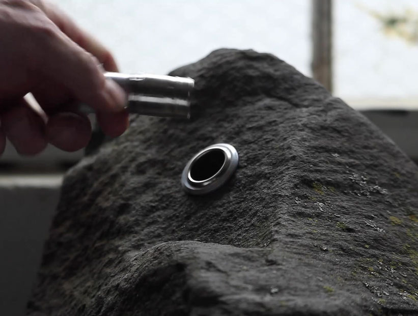Material exploration with Shay Salehi. A functional car lighter is embedded into rock.